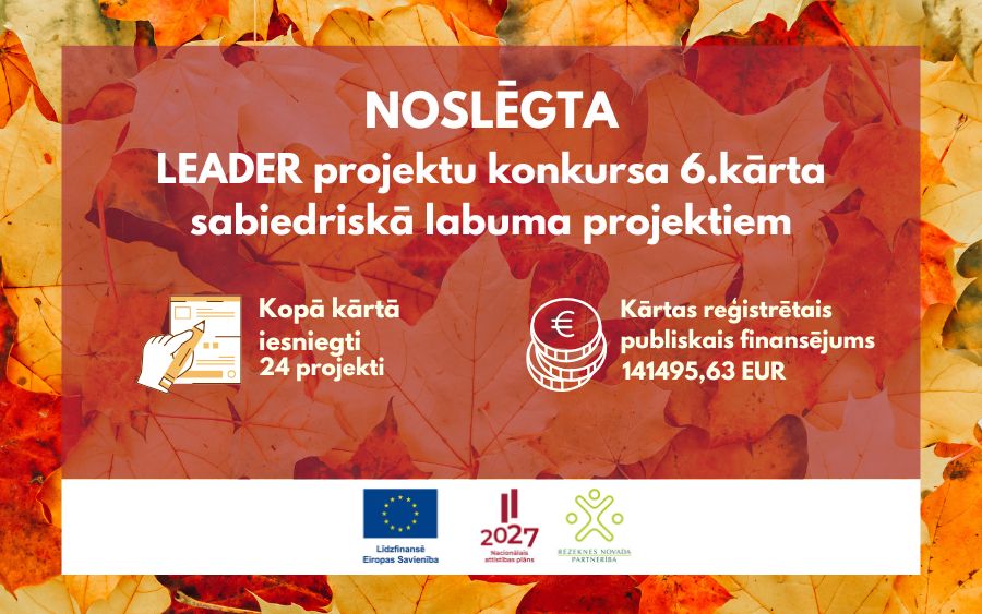 2025.gada 22.oktobrī biedrība “Rēzeknes novada partnerība” ir noslēgusi projektu konkursa iesniegumu pieņemšanas 6.kārtu ELFLA intervences “Darbību īstenošana saskaņā ar sabiedrības virzītas vietējās attīstības stratēģiju, tostarp sadarbības aktivitātes un to sagatavošana” (LA19) aktivitātē “Kopienu spēcinošas un vietas attīstību sekmējošas iniciatīvas” SVVA Stratēģijas mērķa “Pievilcīgas dzīves vides veidošana aktīvai un viedai kopienai” rīcībā R.2.4. “Aktīva sabiedrība”.