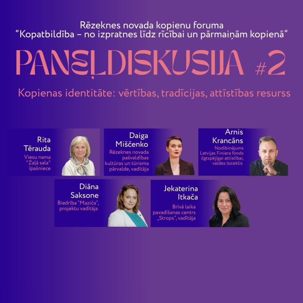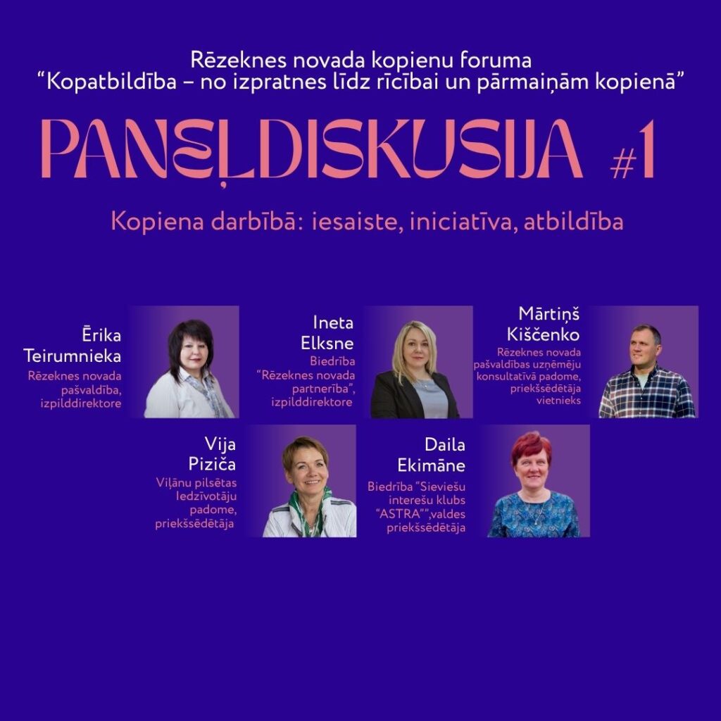 Foruma centrā būs divas paneļdiskusijas ar dažādu jomu kopienu pārstāvju līdzdalību. Pirmajā diskusijā “Kopiena darbībā: iesaiste, iniciatīva, atbildība” tiks analizēti labās prakses piemēri, resursu efektīva izmantošana un atbildības sadalījums starp iesaistītajām pusēm. Savukārt otrajā paneļdiskusijā “Kopienas identitāte: vērtības, tradīcijas, attīstības resurss” uzmanība tiks pievērsta komunikācijai, atbalstam, sadarbībai un Rēzeknes novada kopienas gatavībai kļūt pašpietiekamai.