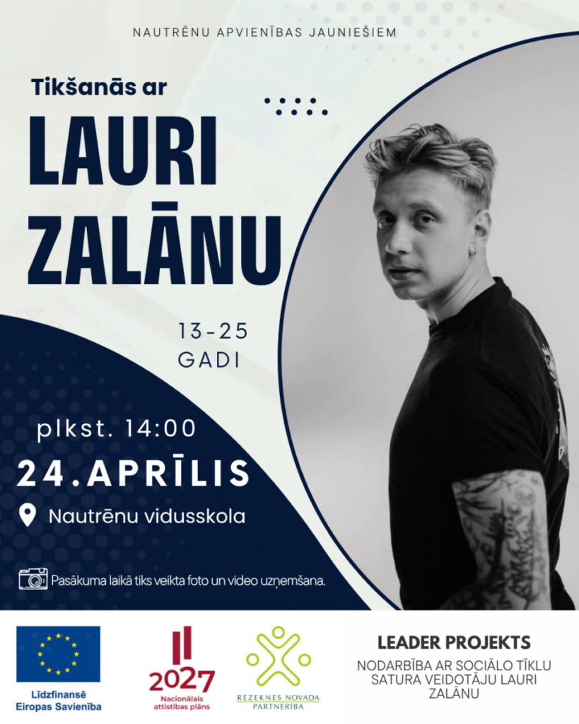 Nautrēnu apvienībā ES ELFLA intervences „Darbību īstenošana saskaņā ar sabiedrības virzītas vietējās attīstības stratēģiju, tostarp sadarbības aktivitātes un to sagatavošana” (LA 19) aktivitātē „Kopienu spēcinošas un vietas attīstību sekmējošas iniciatīvas” atbalstītā projekta “Aktīvai jaunatnei Nautrēnu apvienībā” ietvaros 24. maijā  plkst. 14.00 Nautrēnu apvienības pagastu jauniešiem būs iespēja piedalīties interesantā sociālo tīklu satura veidošanas nodarbībā, kuru vadīs Lauris Zalāns.