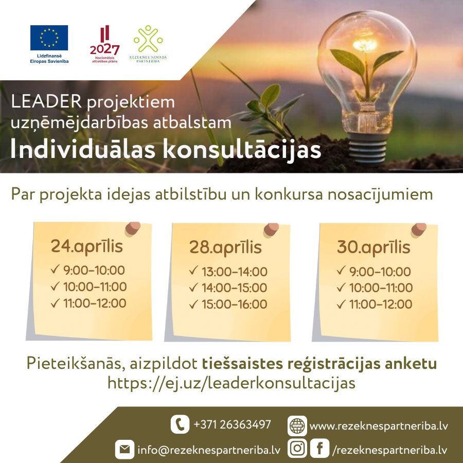 Individuālās konsultācijas tiks nodrošinātas ierastā pasākuma “LEADER dīnys” vietā.